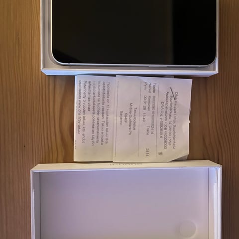 Myydään uudenveroisessa kunnossa oleva iPhone 16e 256GB musta puhelin. Laitteessa ei ole käytännössä ollenkaan kosmeettisia jälkiä ja toiminnaltaan moitteeton. Kauppaan sisältyy SIM-avaaja sekä latauskaapeli.