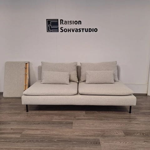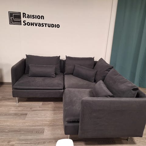 Myynnissä erittäin suuren suosion saavuttanut Iken Söderhamn sarjan kulmasohva. Ryhmä koostuu: 2 x 1:n istuttava osa + kulmapala. Kaikkien osien rungot ovat ehjät. Päälliset erittäin siistikuntoiset. Päällisten väri: Gunnared keskiharmaa. Ryhmän kaikki päälliset ovat irroitettavissa pesuun. Runkojen päälliset mukaan lukien. Lisäksi päälliset ovat halutessaan vaihdettavissa. Huomioitavaa ryhmän kunnossa: Yksi vetoketju hieman reistailee istuintyynyssä joka tulee runkoon kiinni. Ei vaikuta millään tavoin sohvan käyttöön ja vikaa ei edes huomaa jos sitä ei tiedä. Tämä kuitenkin huomioitu hinnassa. Ryhmän hinta: 639e.