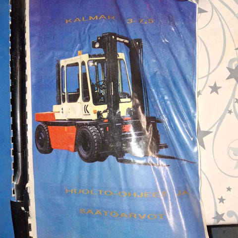 Huoltoohjeet , säätöarvot , hydrauliikkakuvat. Sähkökuvat.Kalmar 3-7 mallisille koneille Perkins koneilla.
