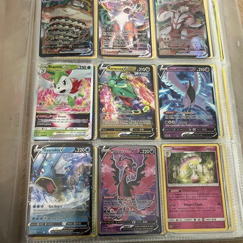 Pokémon VMAX keräilykortit sisältäen Aggron, Blaziken, Calyrex ja Celebi.