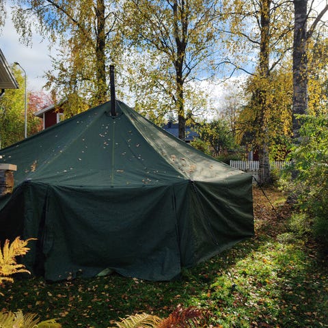 Uusi teltta muutaman kerran käytetty, ja nyt mökki itsellä niin jäänyt ylimääräiseksi. Kaminalla niin pärjää hyvin metsästäjät, kalastajat retkeilijät tästä teltta ympärivuotiseen käyttöön. Huom, näitä ei enää juuri mistään saa ainakaan tässä kunnossa, lisäksi itse kantattu kipinäsuoja sekä muovinen telttapohja.