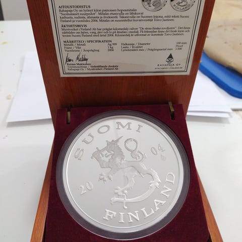 Hopeaharkon on valmistanut K.A.Rasmussen Norja