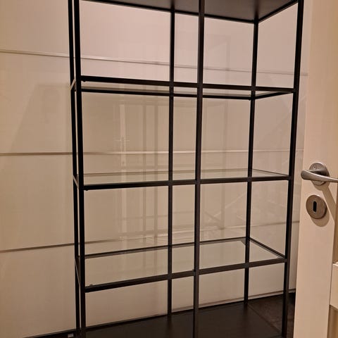 Hyväkuntoinen valkoinen metalli/lasihylly