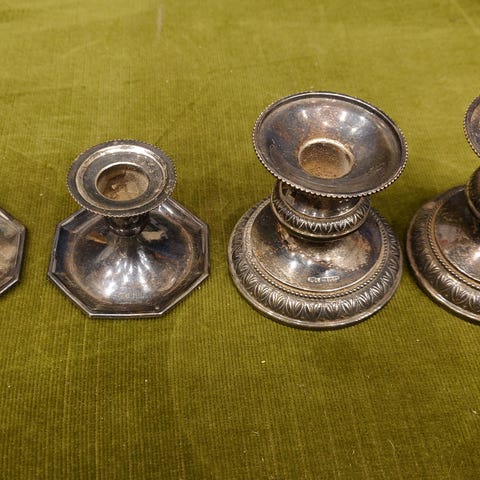 Kynttilänjalka, rungossa 925H hopealeima. Jalustassa pieni kaiverrus. Paino 101,7g. Korkeus n. 7cm.