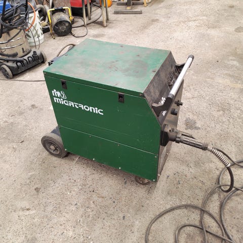 Voimavirta MIG joka soveltuu parhaiten 0,6 ja0,8mm:n lisäainelangalle,sopiva esim. autopeltihitsauksiin.Toki sillä 1mm:n lankakin palaa.Paikallaan nyt 0,6 lanka.Kokeilumahdollisuus on toki .