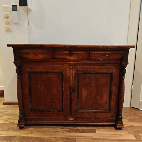 K 94, L 93, S 33 cm. Hyväkuntoinen Lipasto/Senkki. Lukko toimii avain on. Kuljetus kuluja vastaan ok.