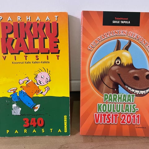 Vitsikirja, jossa on 300 koululaisvitsiä Heikki Jutilan kokoamana. Kirjassa on pehmeät kannet.