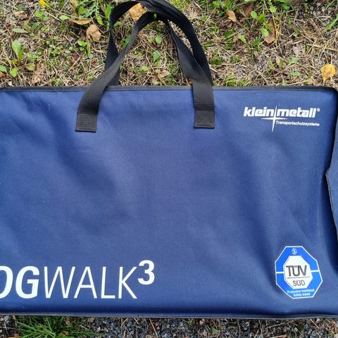 Kleinmetall Dogwalk3 tukeva ja liukumaton kulkuramppi. Ramppi on valmistettu alumiinista ja muovista. Ramppi on 3-osainen ja mukana tulee kantolaukku. Sopii koirien autoon nousun helpottamiseen ja muuhun käyttöön. Vain nouto tai toimitus Matinkylään.