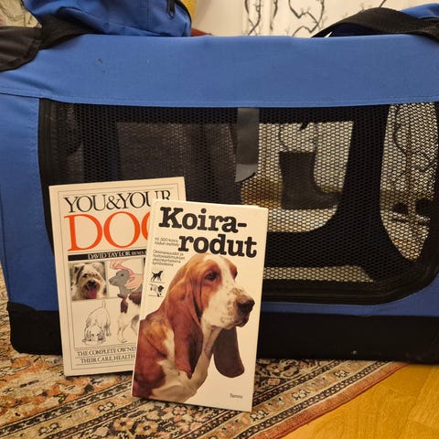 Koiran näyttely- ja kuljetushäkki päällisellä ja alustalla