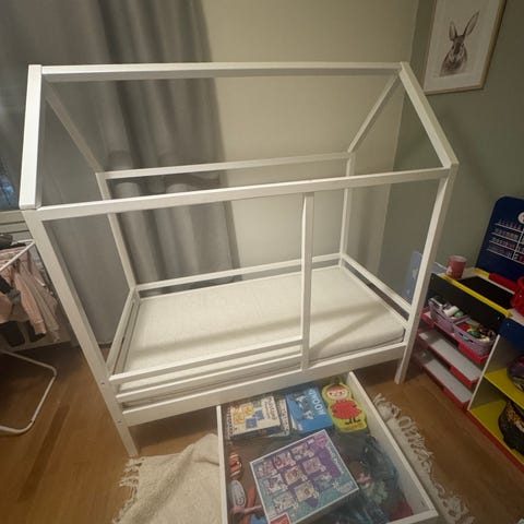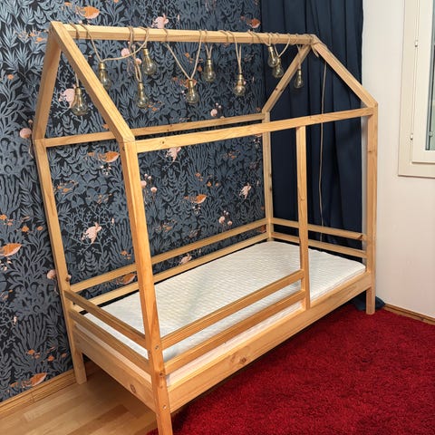 Myydään Jollyroomin Minitude Nordic JAXSON Talosänky isomman sängyn tieltä. Lapsi on kovasti tykännyt nukkua tässä talon mallisessa sängyssä, josta saa helposti tehtyä lakanoilla esim. majan. Sänky on hyvässä kunnossa ja ehjä, mutta takana olevassa paneelissa on kaksi murtumakohtaa ilmeisesti puun oksien kohdalla. Paneeli ei kuitenkaan ole katki. Lisäksi etupaneelissa pienet hampaanjäljet.