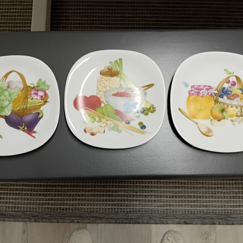 myydään käsin maalatut koriste lautanen 20e kahvikupit 16e muut kolme pienempää astiaa 15e