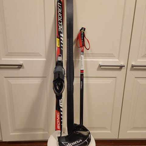 Peltosen pitopohja sukset. Rottefella siteet nnn. Alpina monot 35. Rex sauvat 110 cm (mitattu, pituus noin 108)