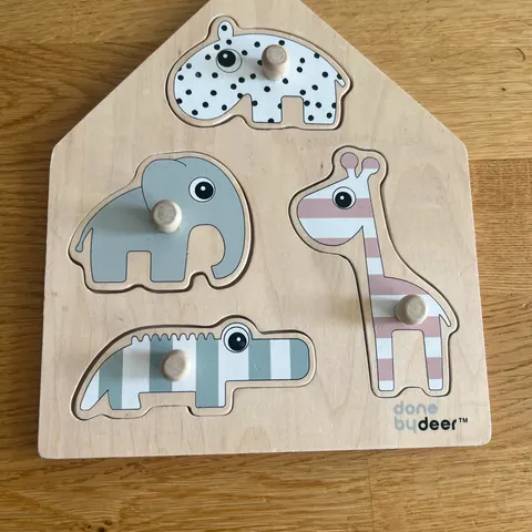 Myyntiin puinen muotopalapeli. Merkki Done by deer. Siisti ja ehjä, mutta pientä käytönjälkeä, katso kuvat.
