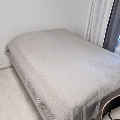 🌸 Päiväpeiton ruusukuvioisen päällysosan mitat ovat 180cm x 200 cm + helman pituus n. 25 cm. Mitoilta mielestäni hyvä 140cm - 180cm levyiseen sänkyyn! Riippuu sängyn korkeudesta, että haluaako helman ulottuvan lattiaan asti. Huom. Peitto on ohutta kangasta.