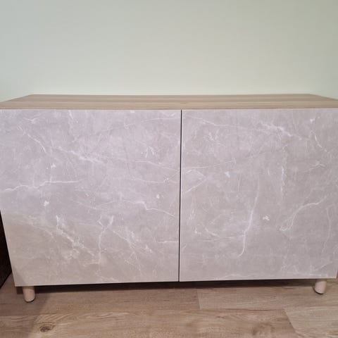 Bestå lipasto/senkki. Korkeakiilto ovet. Kaksi hyllyä kaikissa kaapeissa.