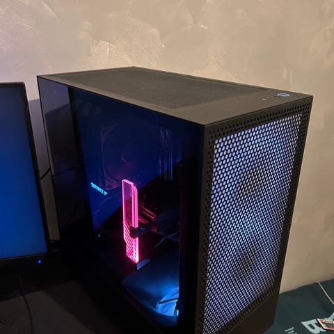 Tyylikkääseen mustavalkoiseen NZXT H1-koteloon rakennettu söpö ja tehokas alle 20cm x 20cm pöytätilaa vievä minimalistinen pelikone. Sopii parhaiten 1440p-pelikoneeksi, vanhemmat pelit varmasti pyörii hyvin 4k:nakin. Kokoisekseen yllättävänkin hiljainen.