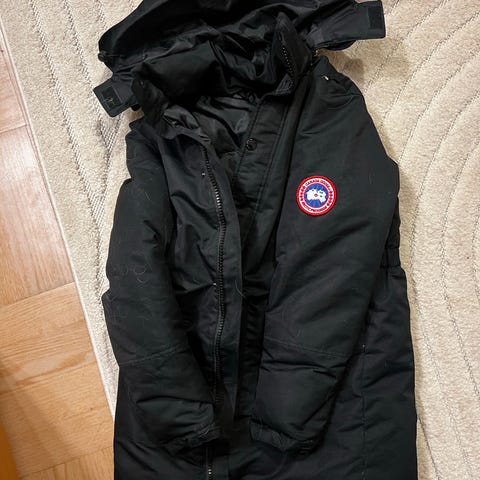 Canada Goose naisten toppatakki, koko S. Väri musta. Pitkä malli, jossa huppu ja etutaskut. Takki on ehjä, mutta yksi taskuista on rikki, pystyy korjaamaan. Mieluummin nouto, postitus onnistuu (hinta +postimaksu). Tarjous