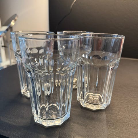 IKEA lasit, 4 kappaletta, kirkas lasimateriaali ja kuvioitu pinta. Soveltuvat juomien tarjoiluun keittiössä tai ruokailutilassa. Ei säröjä. Jotain pientä kulumaa varmasti käytöstä tullut. Joko nouto Tampereelta tai toridiili