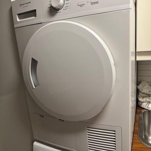 Siisti ja puhdas kuivausrumpu, hyvässä kunnossa. Energiatehokas lämpöpumpputekniikka kuivaa pyykin hellävaraisesti ja taloudellisesti.