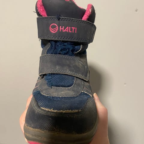 Halti lasten talvikengät koko 30 tytöille. Kengissä on musta kumipohja ja punainen kuvioitu yläosa, jossa kiristysnauha. Soveltuvat käytettäväksi kylmissä olosuhteissa lapsille. Vuori ehjä.