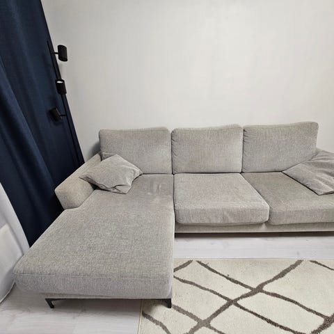 Pituus 230, syvyys 103 ja korkeus 79 cm (selkänoja). Toisen selkätyynyn vetoketju on rikki ja se on ommeltu kiinni. Sohva on Walt - Belgialainen huonekaluliike ja hyvän laatuinen. Myydään kun ei mahdu uuteen asuntoon. Saa ehdottaa hintaa!