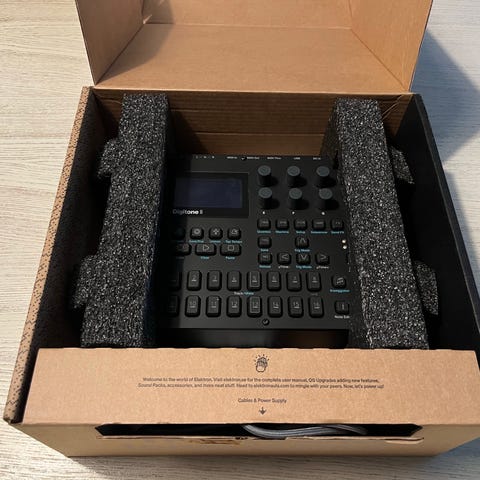 Muutaman kerran käytetty Digitakt myynnissä. Näytössä vielä suojakalvo paikallaan. Ostettu 2/2023.