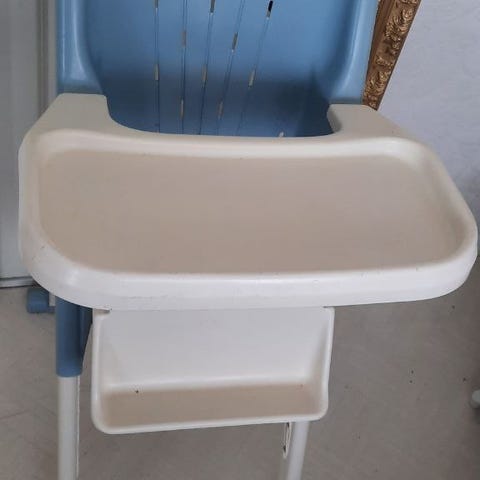 mukana tuoli, vauvasetti sekä tarjotin. Täydellinen setti vauvan ruokailuun!