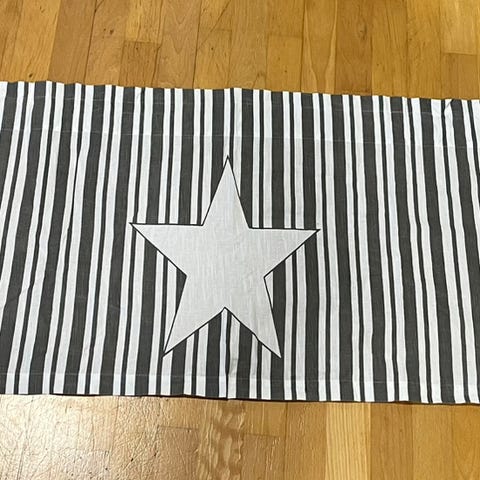 Läpikuultava vihreä kappaverho. Materiaalina polyesteriä, joka näyttää pellavalta.