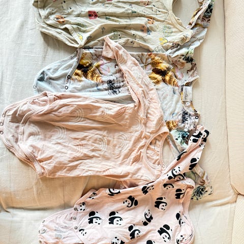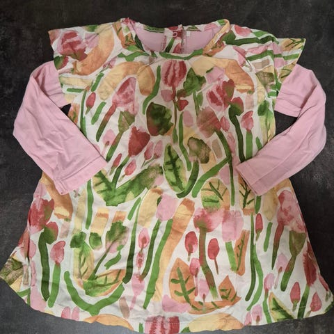 Erinomaisessa kunnossa oleva bodymekko koossa 86. Oli meille kuitenkin liian napakka, eli sanoisin että parempi hoikalle lapselle tai jo 80 koossa käytettäväksi. Tätä siis kerran muistaakseni käytetty. Hajusteeton.