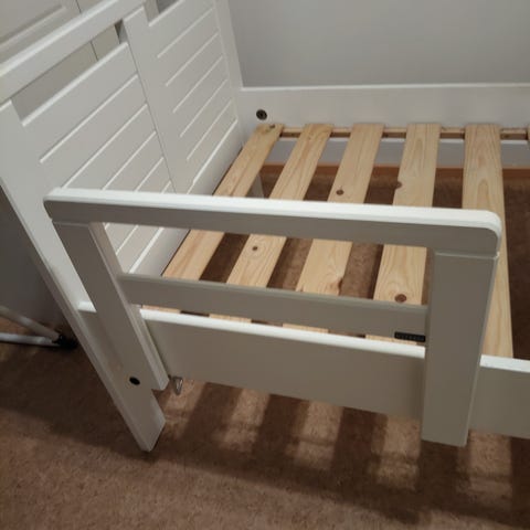Koivun värinen. Siisti, hyväkuntoinen patja sisältyy kauppaan. Metallinen nousutuki ei kuulu kauppaan.
