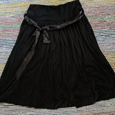 Amisu musta naisten hame/shortsi-yhdistelmä, koko 32. Materiaalina keinonahka. Hameessa on vetoketju sivussa ja suora leikkaus.