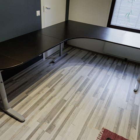 Hyvässä kunnossa ja siisti Ikean työpöytä. Tämä on ollut noin vuoden käytössä. Hyllykön taakse kiinnitetty muovipala johtojen piilottamiseksi, mutta sen saa repimällä irti. Vain nouto.
