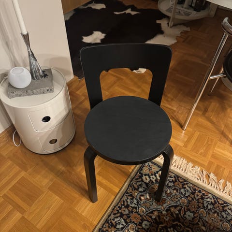 Artekin tuoli 66 koko koivu. Tuoli on ihan hyvässä käytetyssä kunnossa. Toki käytönjälkiä löytyy jonkinverran. Kolme muuta tuolia on myyty.