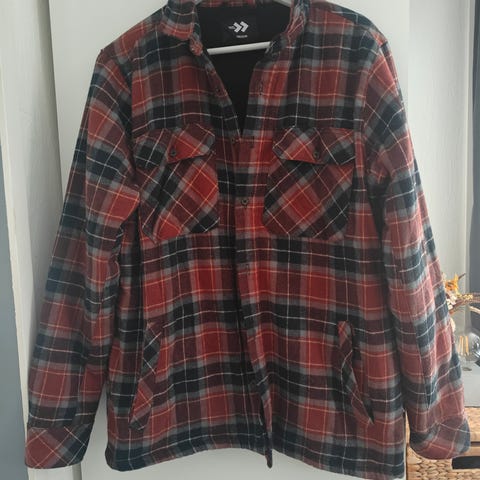 Uusi ja käyttämätön paitatakki irrotettavalla hupulla ja lämpimällä vuorella. Kaksi napillista rintatasku, povitasku ja sivutaskut. Hihansuissa myös napit. Koko M.