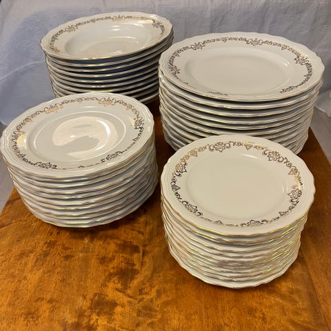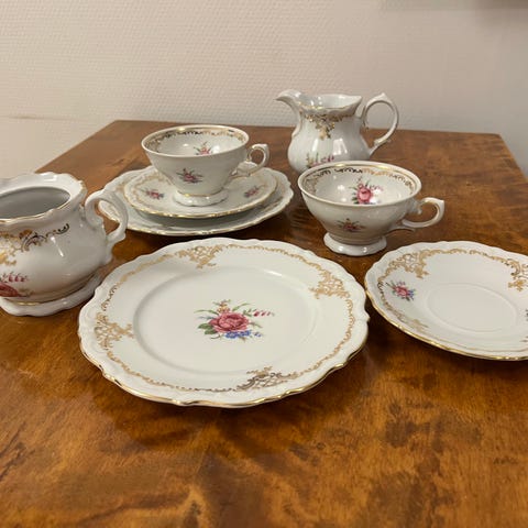 Kaunis posliininen Bavarian Rheinkrone-tarjoiluastiasto yhteensä 10 osaa, hyvässä kunnossa.