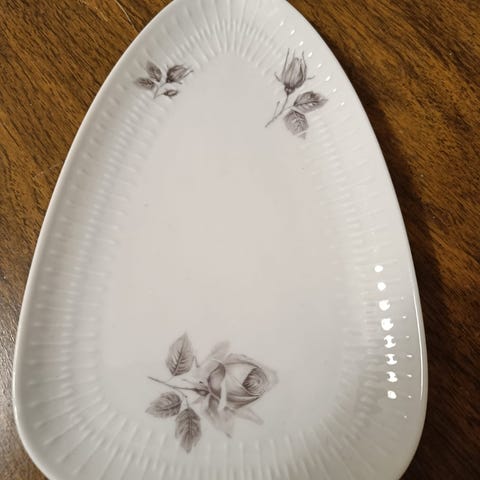 Neliönmallinen tarjoilukulho ja toisiksi isoin soikea tarjoiluvati myyty.
