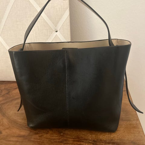 & Other Stories nahkainen naisten laukku mustassa värissä. Laukussa on kaksi kantohihnaa ja tilava sisätila. Sopii arkikäyttöön ja erilaisiin tilaisuuksiin.