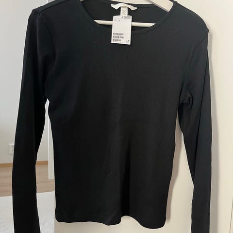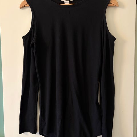 Musta pitkähihainen paita, liukas joustava kangas. Avoin selkä. Koko L