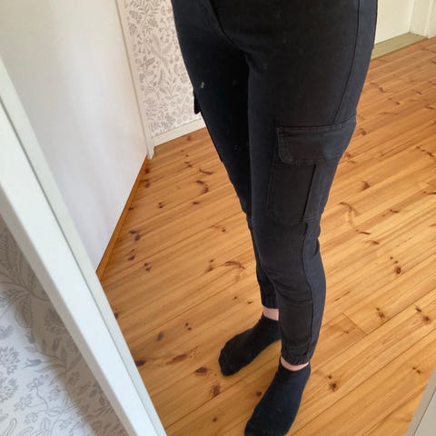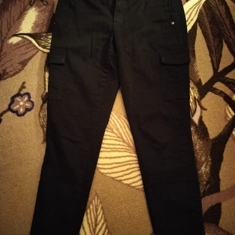 Naisten reisitaskuhousut s koossa. Merkki FBsister. Pari kertaa olleet jalassa eli hyväkuntoiset. Ainoa vaan että näissä nyt eläimen karvaa ja pölykarvaa pinnassa, mutta käyn läpi tarraharjalla ennen myyntiä