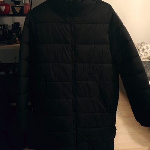 Musta Vero modan, karvahupullinen lämmin takki. Vähä pitempää mallia, keskellä nyörit kiristystä varten. Haku annalasta tai postit ostajalle.