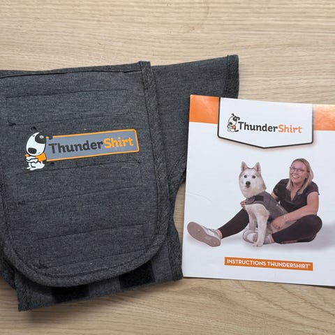 ThunderShirt Rauhoittava Koira-asu harmaassa värissä. Valmistettu pehmeästä ja joustavasta materiaalista, joka auttaa rauhoittamaan koiraa painesidoksen avulla. Sopii eri kokoisille koirille, helppo kiinnittää tarrakiinnityksillä. Käytetään stressaantuneiden koirien rauhoittamiseen erilaisissa tilanteissa, kuten ukkosen, ilotulitusten tai matkustamisen aikana. Kokeiltu päälle muutaman kerran, kuin uusi.