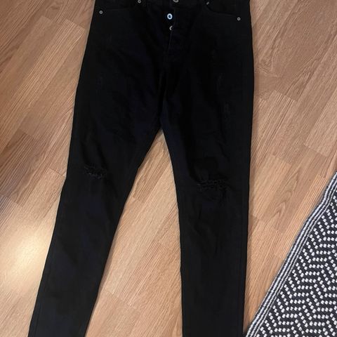 Todella vähän käytetyt tummansiniset ajofarkut, joissa 4 vetoketjullista taskua ja vetoketjuttomat etutaskut.