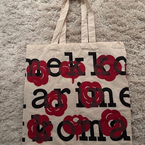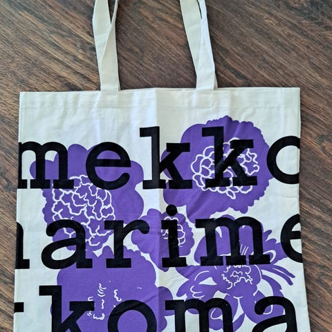 Myydään uusi Marimekon logokassi.