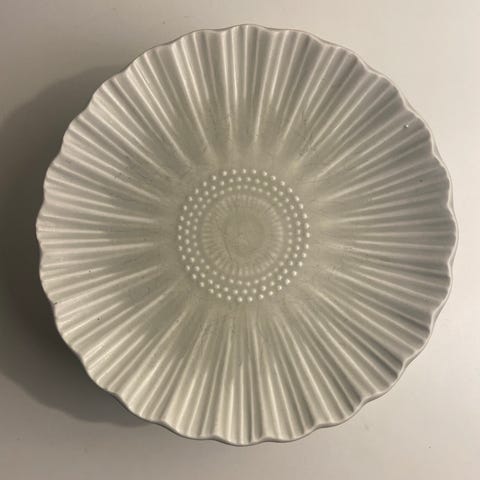 Harvoin tarjolla olevat posliiniset Upsala Ekeby Gefle- sarjan Dill lautaset. Valmistettu Upsala-Ekebyn keramiikkatehtaalla 1960-luvulla. Suunnittelija Helmer Ringström.