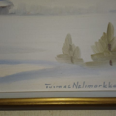 Kuvan öljyväri kankaalle kiilakehyksin, taulun koko n. 60 cm x 70 cm.
