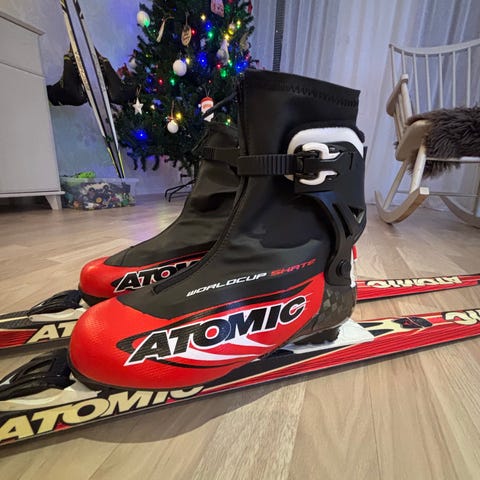 Vähällä käytöllä vapaan hiihtotyylin sukset ja monot (koko 36)