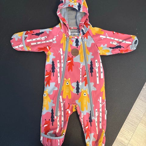 Uudenveroinen softshell -haalari kokoa 62. Käytetty vain pari kertaa vaunuissa. Käännettävät hihan- ja lahkeensuut ja fleecevuori.