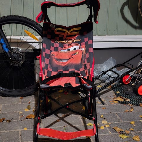 Käytetyt matkarattaat. Yksi rengas ei pyöri kunnolla. Kuomussa myös pieni vika.