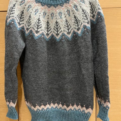 Islantilais/norjalaistyylinen villapaita. Kaunis, uusi ja itse suunniteltu ja neulottu. Lanka Letlopi 100% islanninvilla. Lämmin ulkoiluun ja lanka hylkii vettä ja pehmenee ja paranee vain käytössä. Koko M.