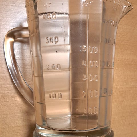 Kuvien vanha ja iso lasinen mittakannu. Pohjan reunalta puuttuu pala, muuten hyväkuntoinen! On siis vesitiivis ja soveltuu käyttöön.